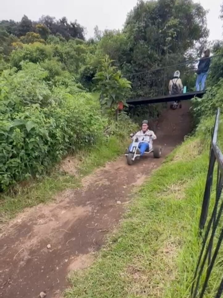 Speed down a 300-meter track on a special tricycle, finishing next to a giant figure and even an old airplane.