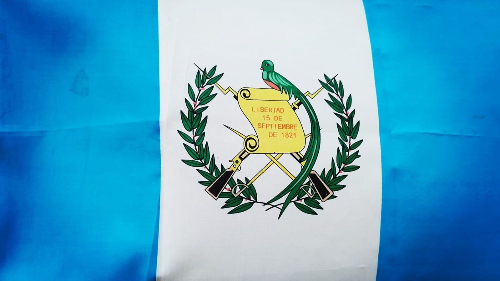 - Coat of Arms on the white field: the quetzal (national bird) for liberty/sovreignty; the scroll bears the date of independence (15 September 1821) as a symbol of emancipation; crossed rifles and swords indicate the willingness to defend sovereignty (rifles for defending the republic, swords for honor); laurel wreath symbolizes victory. (Note: specific elements and some inscriptions changed between conservative and liberal versions in the 19th century; the 1871 coat simplified elements to reflect liberal national narratives.) Wikipedia
